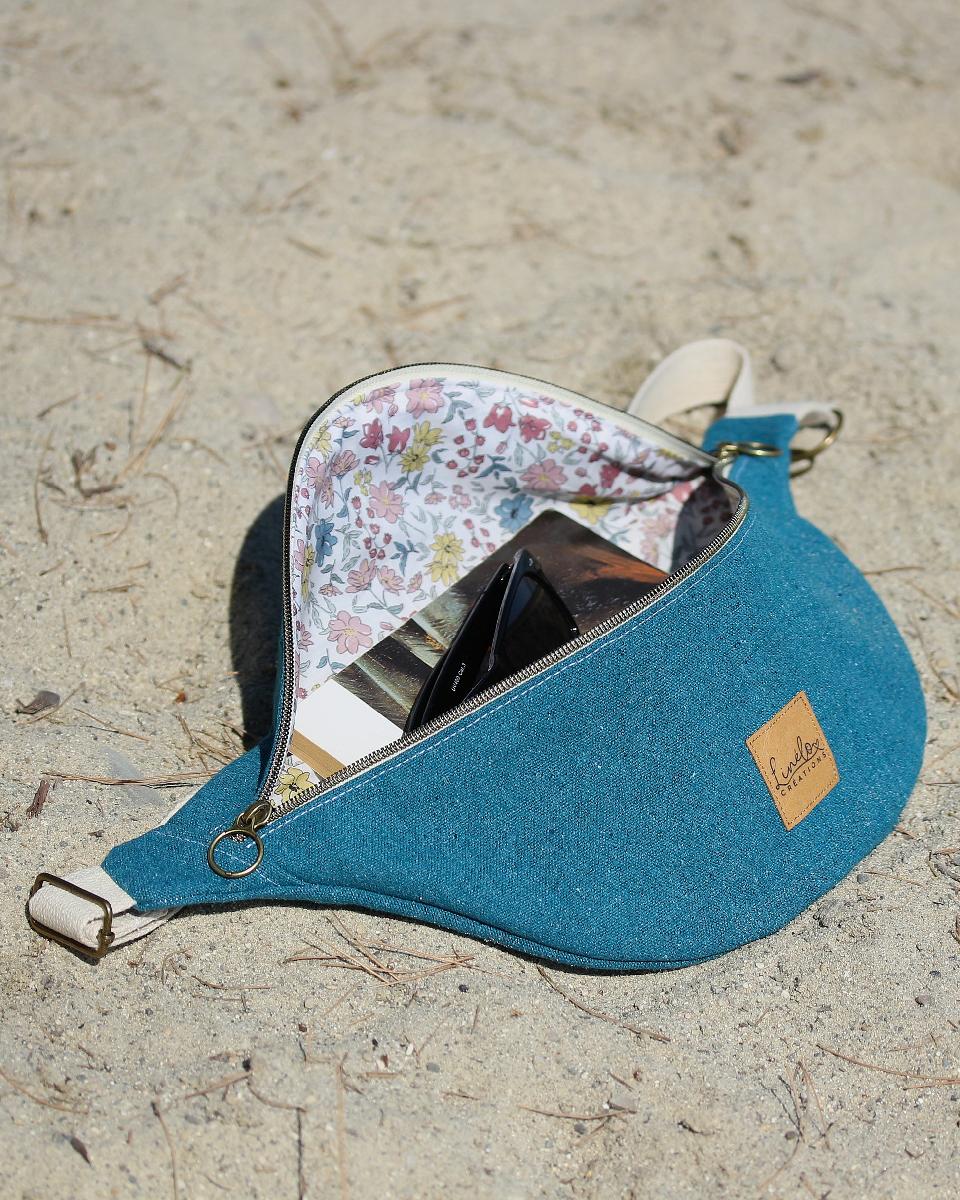 Ajoutez une touche de soleil à vos tenues avec ce sac banane en toile de coton bleu paon, l’accessoire idéal pour l’été ! Conçu pour être à la fois léger, pratique et tendance, il vous accompagnera partout : en ville, en vacances ou lors de vos balades estivales.
