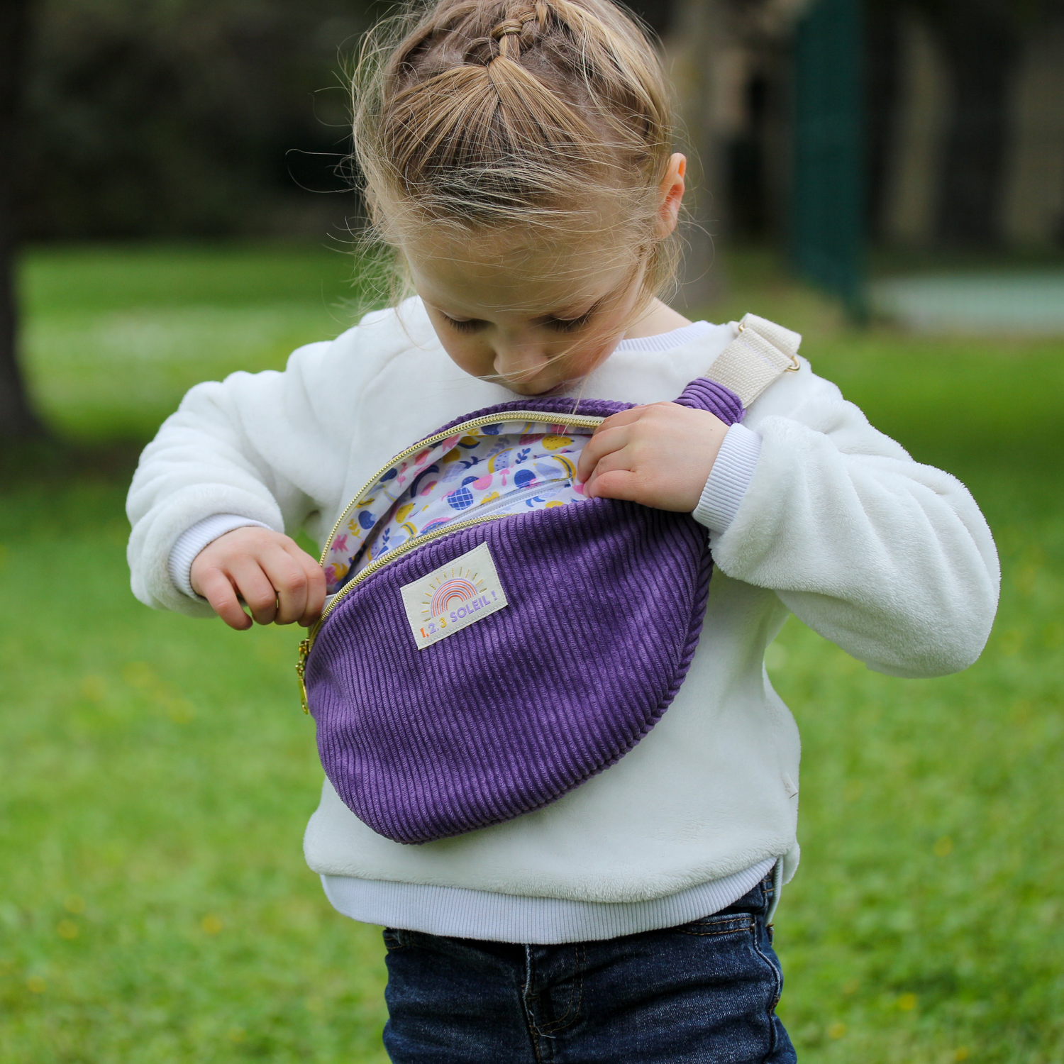 Sac banane enfant "1.2.3 Soleil" Velours côtelé violet